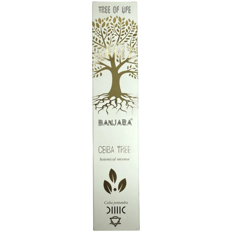 Bețișoare parfumate botanice Banjara – Arborele Ceiba , cu aromă lemnoasă caldă și protectoare. Ideale pentru relaxare, meditație și echilibru energetic.