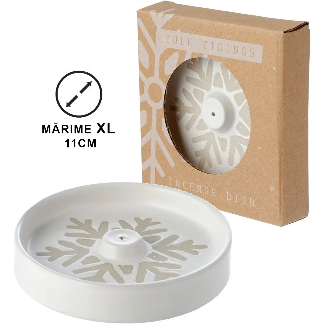 Un cadou perfect pentru un Secret Santa, acest suport pentru bețișoare din gresie ceramică mată este creat special pentru a înfrumuseța altarul din orice spațiu, fiind decorat cu un fulg de zăpadă.